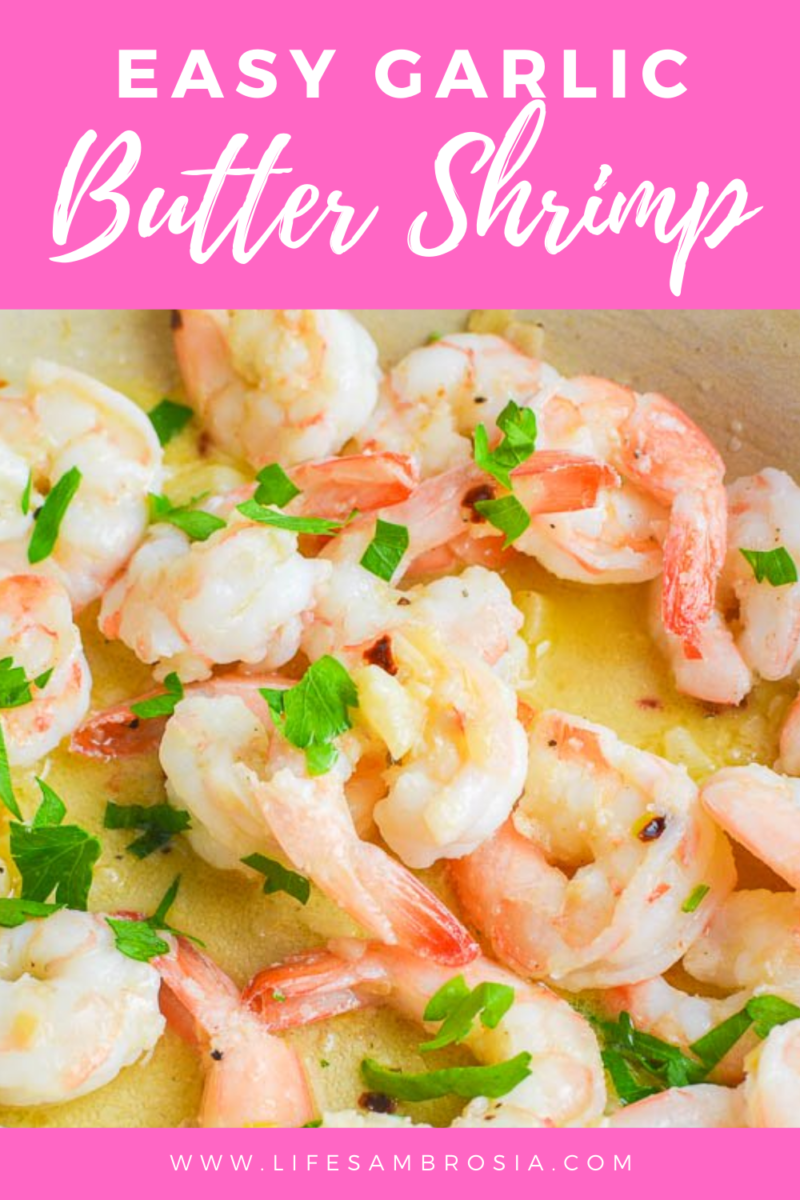 See how easy is that?? This garlicky buttery shrimp is a huge hit with the whole family. I served it with a green salad and some crusty bread to sop up all of that garlic butter!