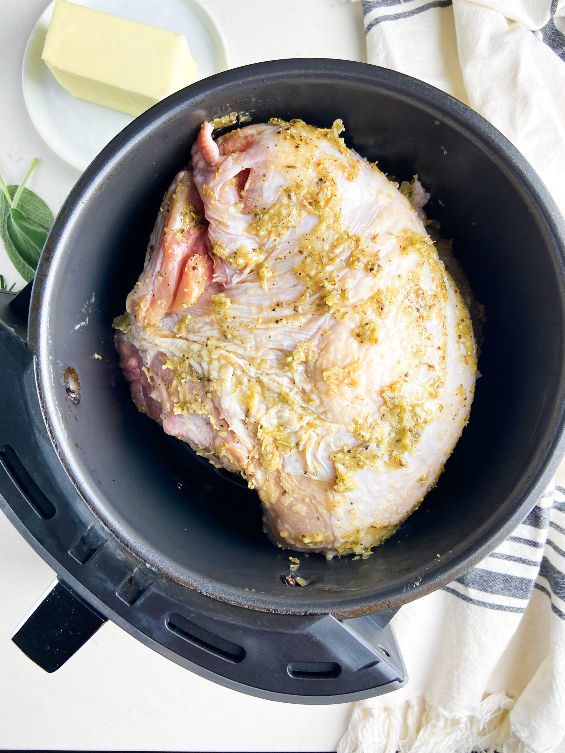 TURKEY BREAST: I used a 5 pound bone in turkey breast. And that was about the max that my (5.5 qt) air fryer could take.