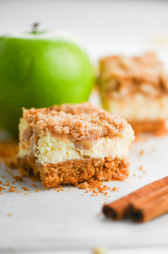 Pumpkin gets all of the love in the fall but let me tell you that in the early fall when the temperatures start to cool, the days get crisp and the leaves start to turn I start to crave all the apple desserts. And now that I have made these, these Apple Cheesecake Bars are going right to the top of our dessert rotation.
