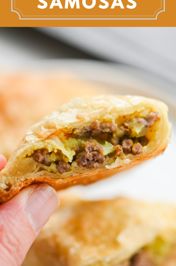 Beef Samosas are little pockets of deliciousness! A flavorful filling of beef and vegetables is wrapped in puff pastry and baked until golden.