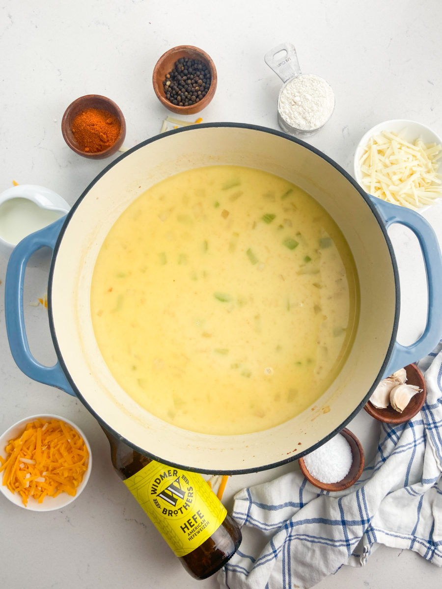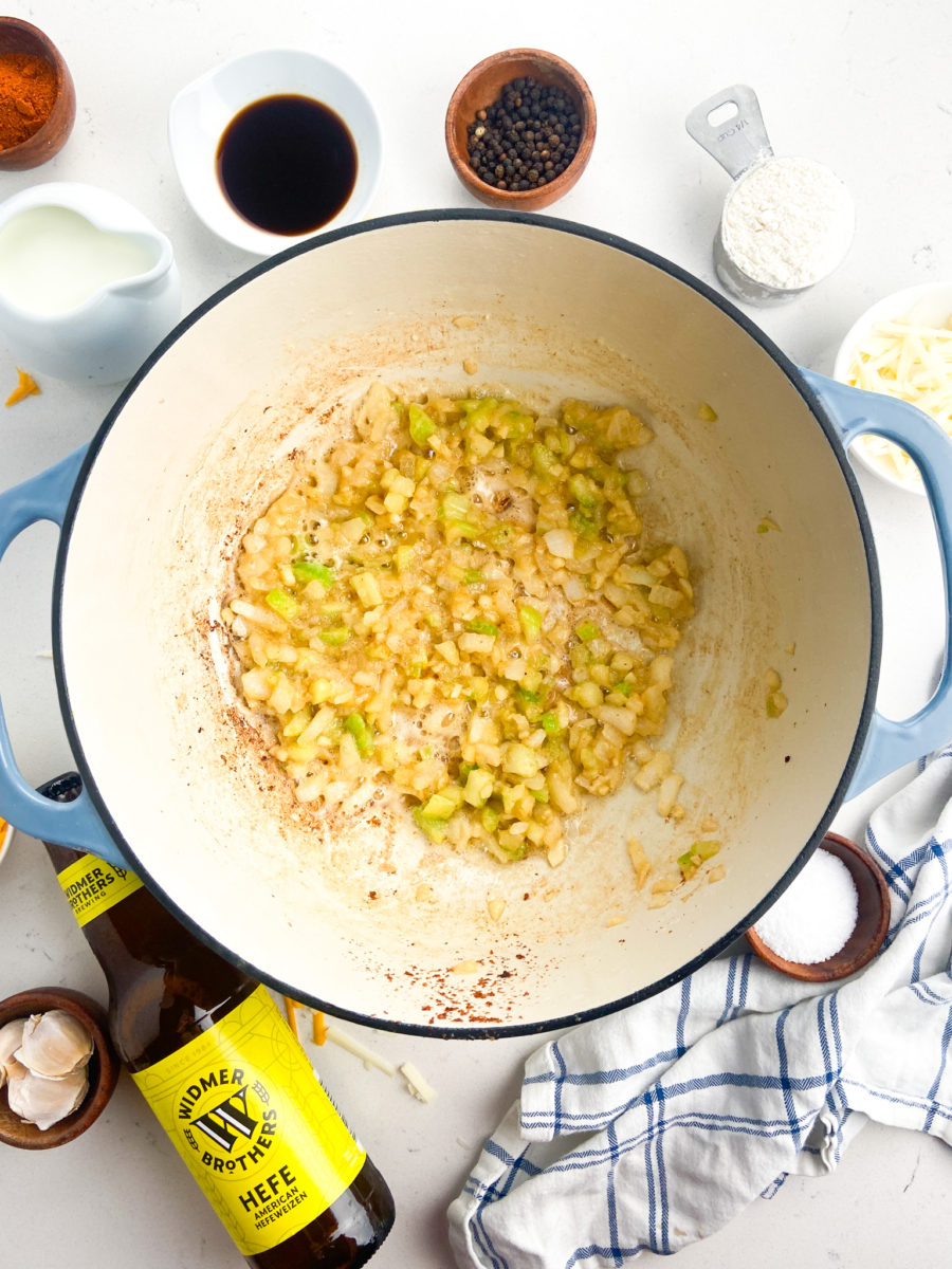 Making Beer Cheese Soup isn’t too involved and it comes together pretty quickly. Follow along with these step by step photos and instructions:
