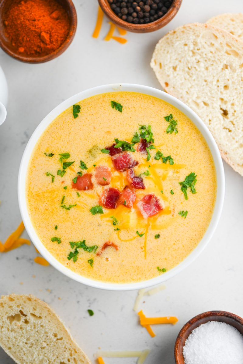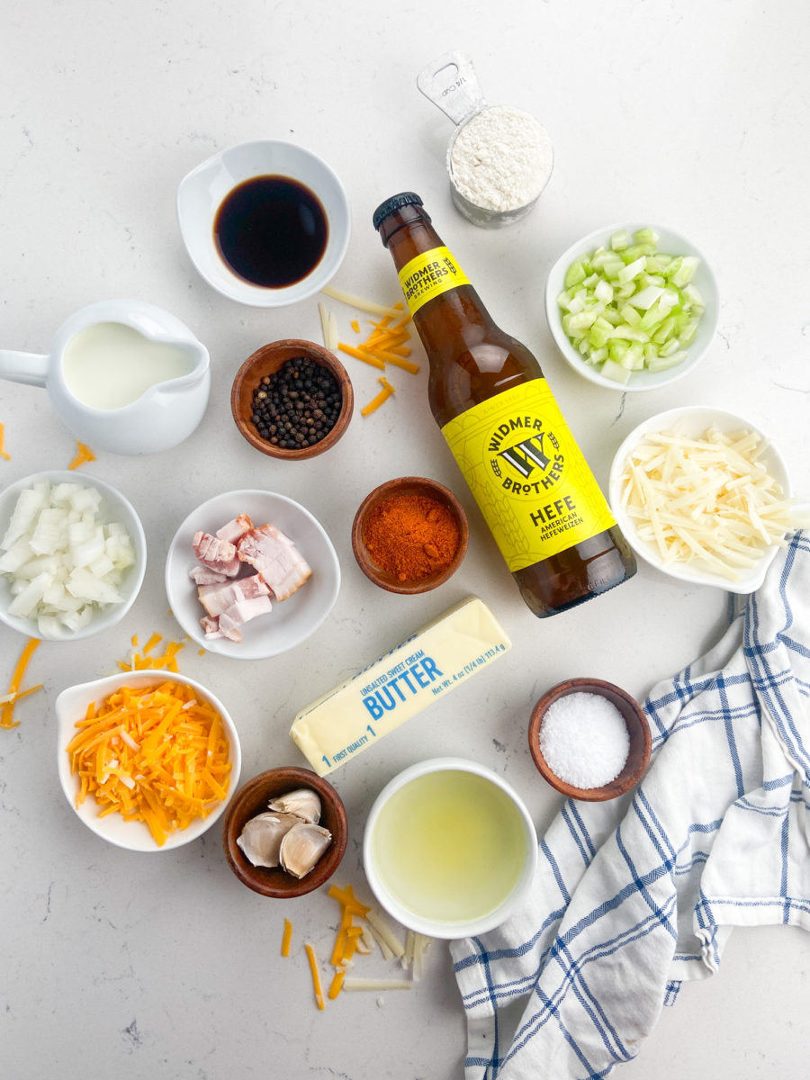 Beer Cheese Soup is a cozy soup full of flavor. Made with bacon, beer, milk, cream, sharp cheddar and seasonings, it’s comfort in a bowl!
