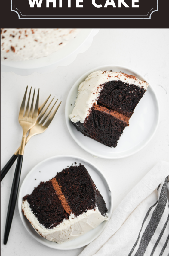 Black and White cake is a rich, decadent chocolate layer cake with a center of chocolate ganache and creamy white chocolate frosting on top. Perfect for chocolate lovers!