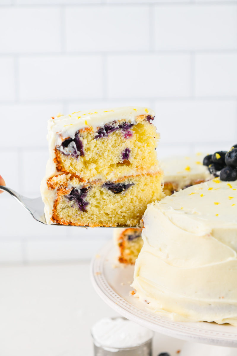 This Blueberry Lemon Cake is a gorgeous summer dessert. This delectable cake is studded with sweet blueberries and frosted with cream cheese frosting.