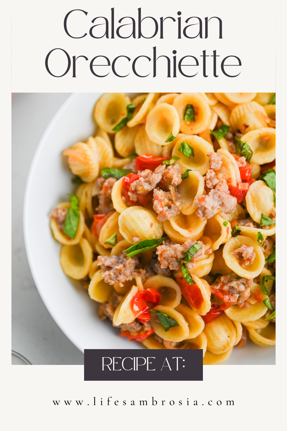 Spice up your weeknights with Calabrian Orecchiette pasta made with sweet cherry tomatoes, savory sausage, and spicy Calabrian chiles.