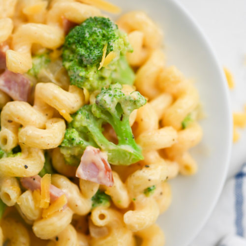 Ham, broccoli and cavatappi pasta combine with a decadent cheese sauce to make this Cheesy Ham and Broccoli Pasta. Perfect for weeknights!