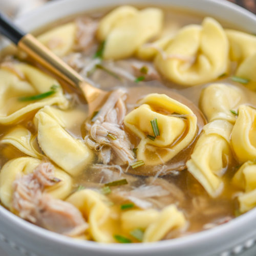 With a little help from a store bought rotisserie chicken (or any leftover chicken you might have on hand) and some store bought tortellini, Chicken Tortellini Soup comes together in under 30 minutes. Making it the perfect soup to make on a cool weeknight evening.