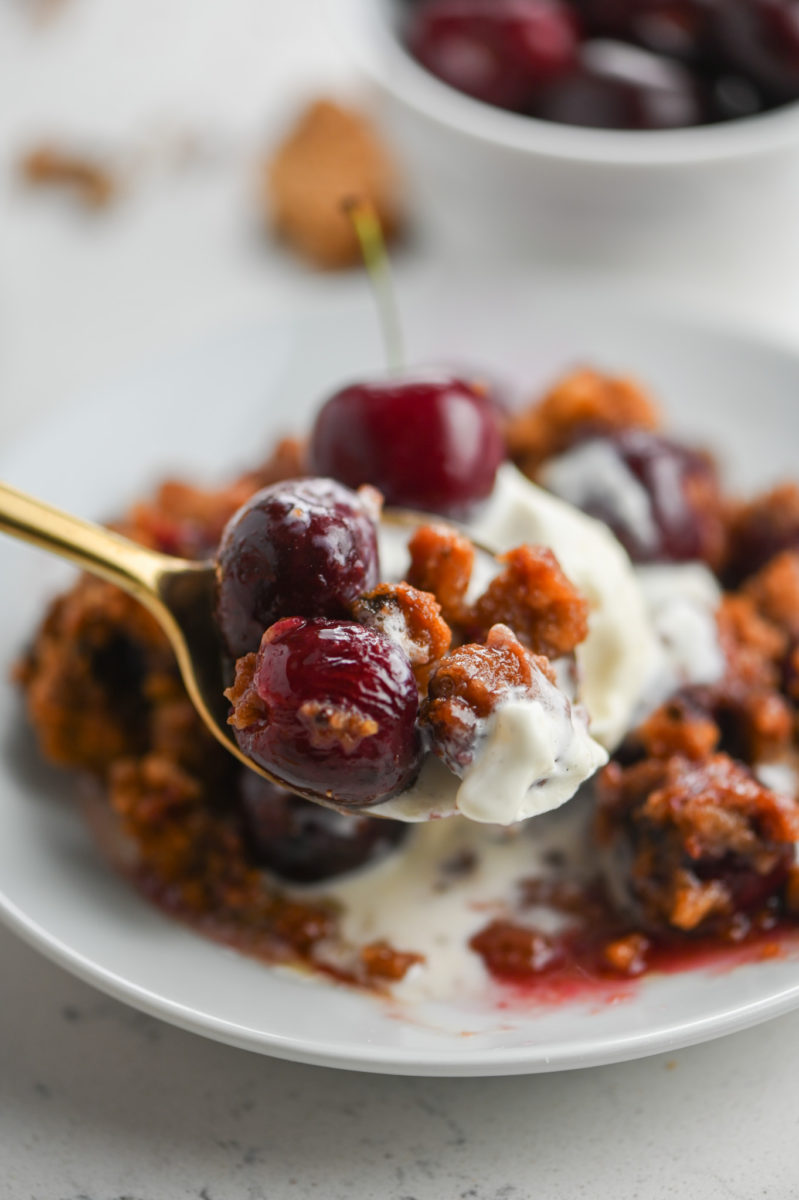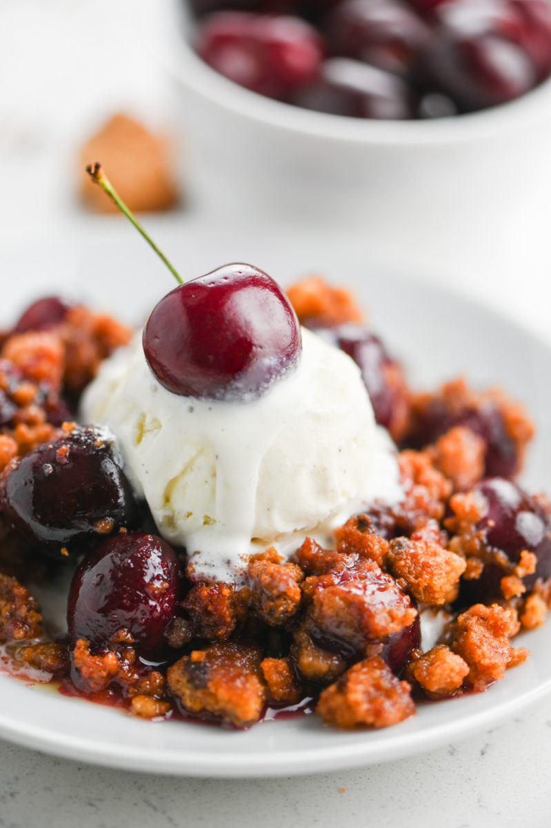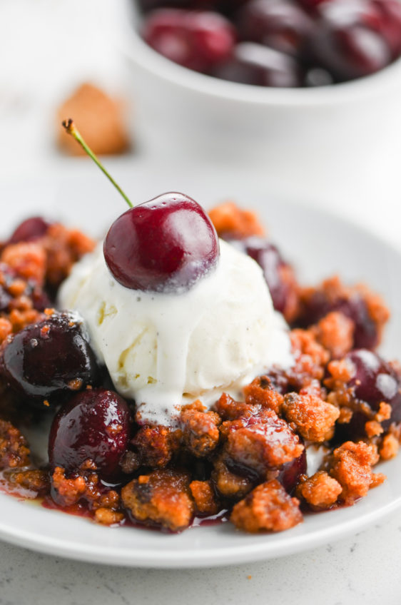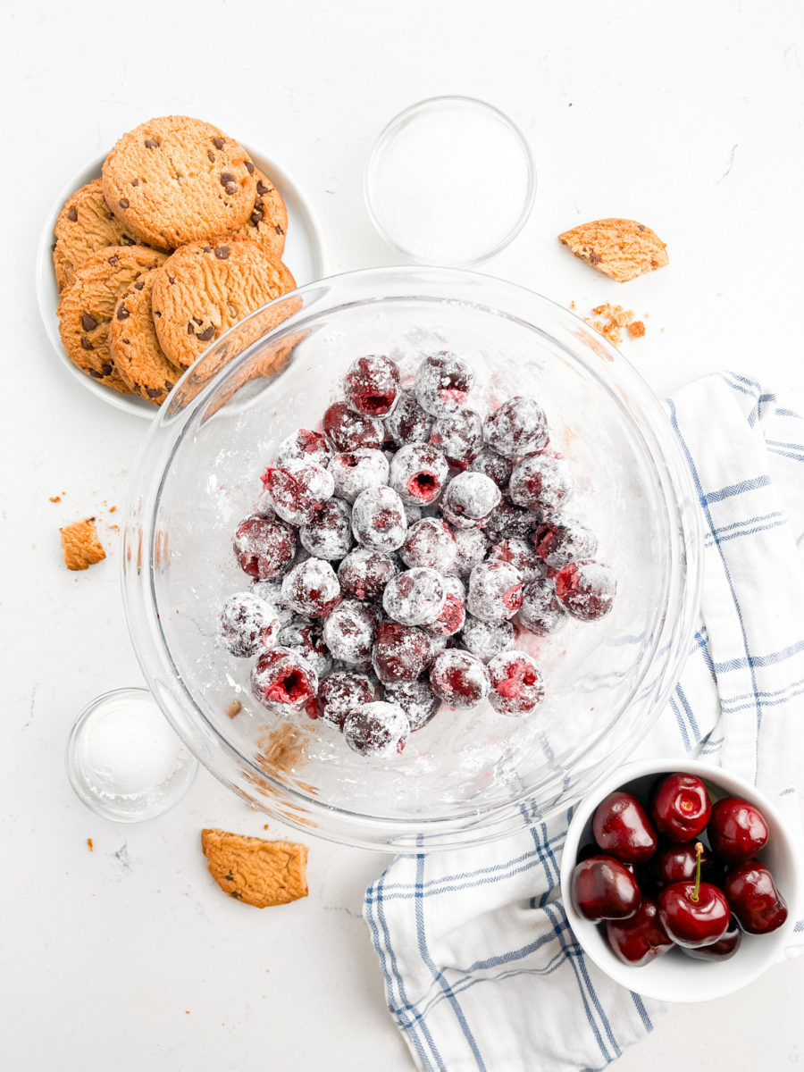 FRESH SWEET CHERRIES: I love to make this in the summer with fresh cherries! It can be made with frozen cherries but make sure that you use them frozen. Thawing can release excess moisture that can mess with the final consistency of the dish.