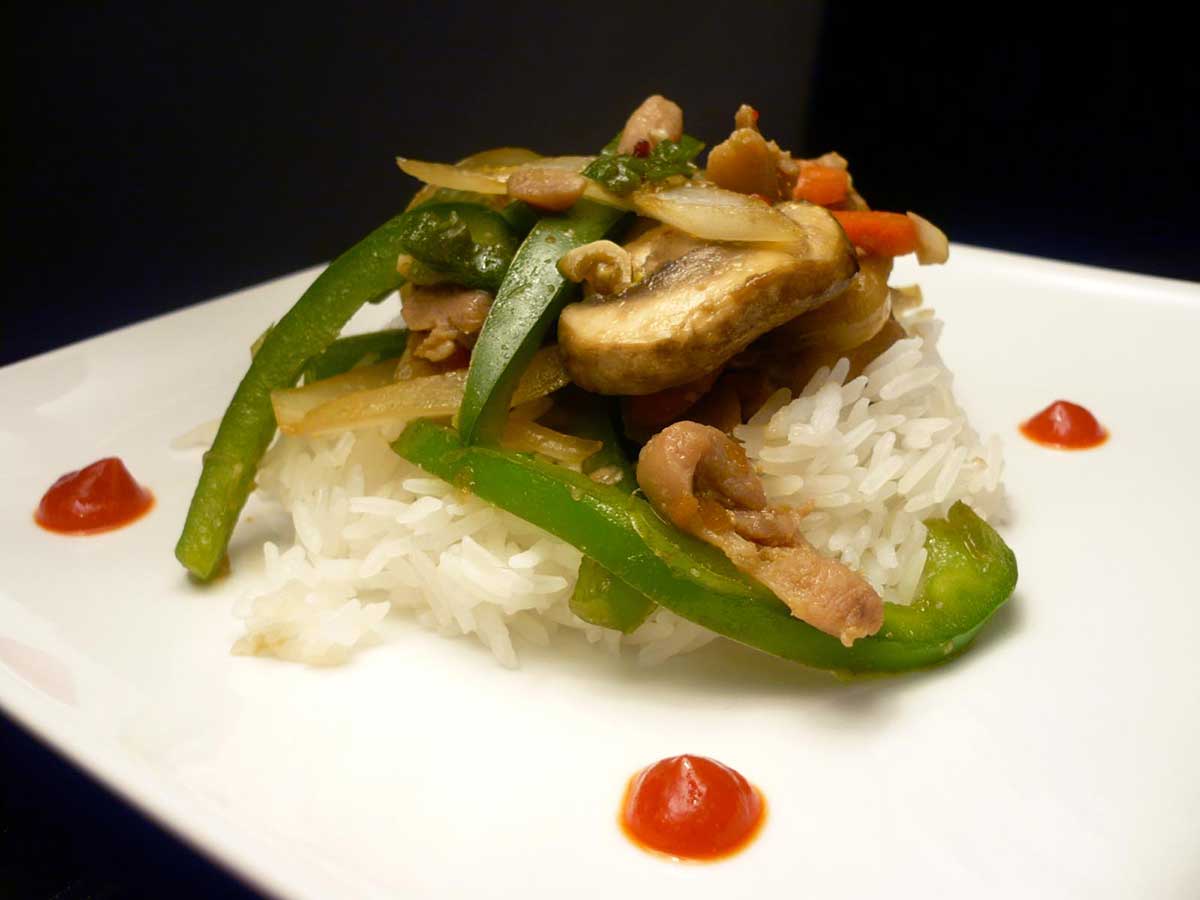 Combine corn starch and water together in a small bowl to make a slurry. Add to chicken and stir. Continue cooking until sauce has thickened and chicken is cooked through.