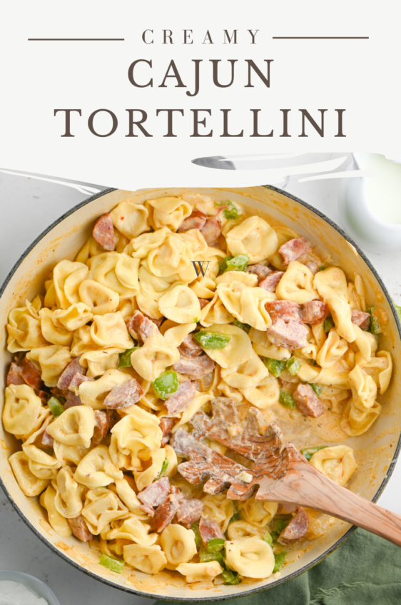 Creamy Cajun Tortellini is a decadent, spicy pasta dish that comes together in a flash. Cheesy tortellini, andouille sausage and bell peppers simmered in a creamy cajun sauce.