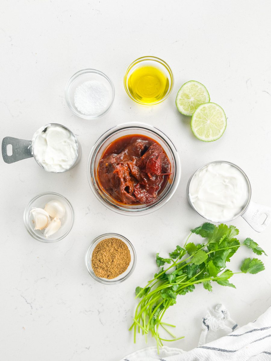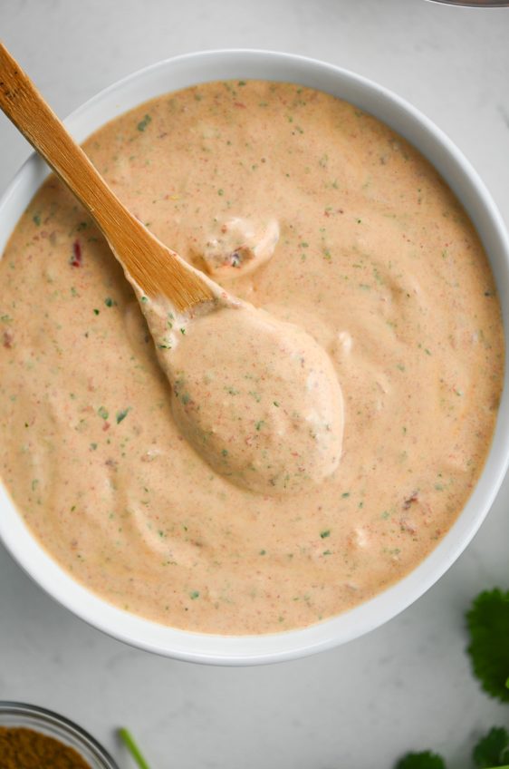 SOUR CREAM/GREEK YOGURT: This is the creamy base of the sauce. Together they are tangy and creamy. The fat in the sour cream helps smooth out the sauce.
