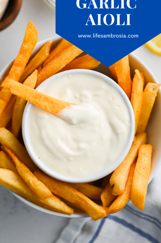 So long ketchup! Garlic Aioli is the french fry dip you need to be using. This recipe is made with mayonnaise, lemon, olive oil and garlic. It’s easy, quick and perfectly creamy.