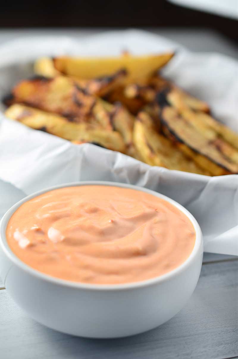 It’s so good guys. Creamy, spicy and full of flavor. We dipped grilled fries in it but I can’t wait to use it on sandwiches… burgers…chips…onion rings…a spoon.