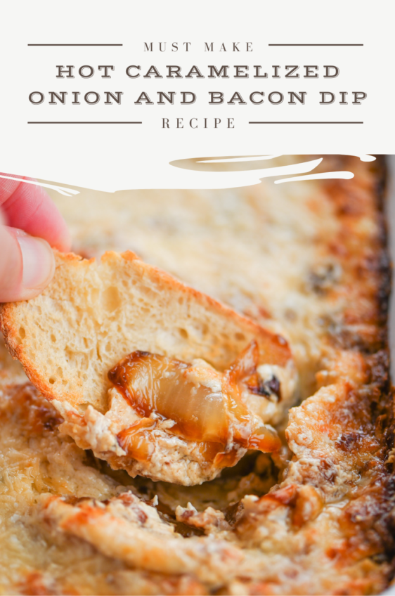 Hot Caramelized Onion and Bacon dip is a must for parties! This cheesy dip is made with bacon, sweet caramelized onions and Parmesan cheese.