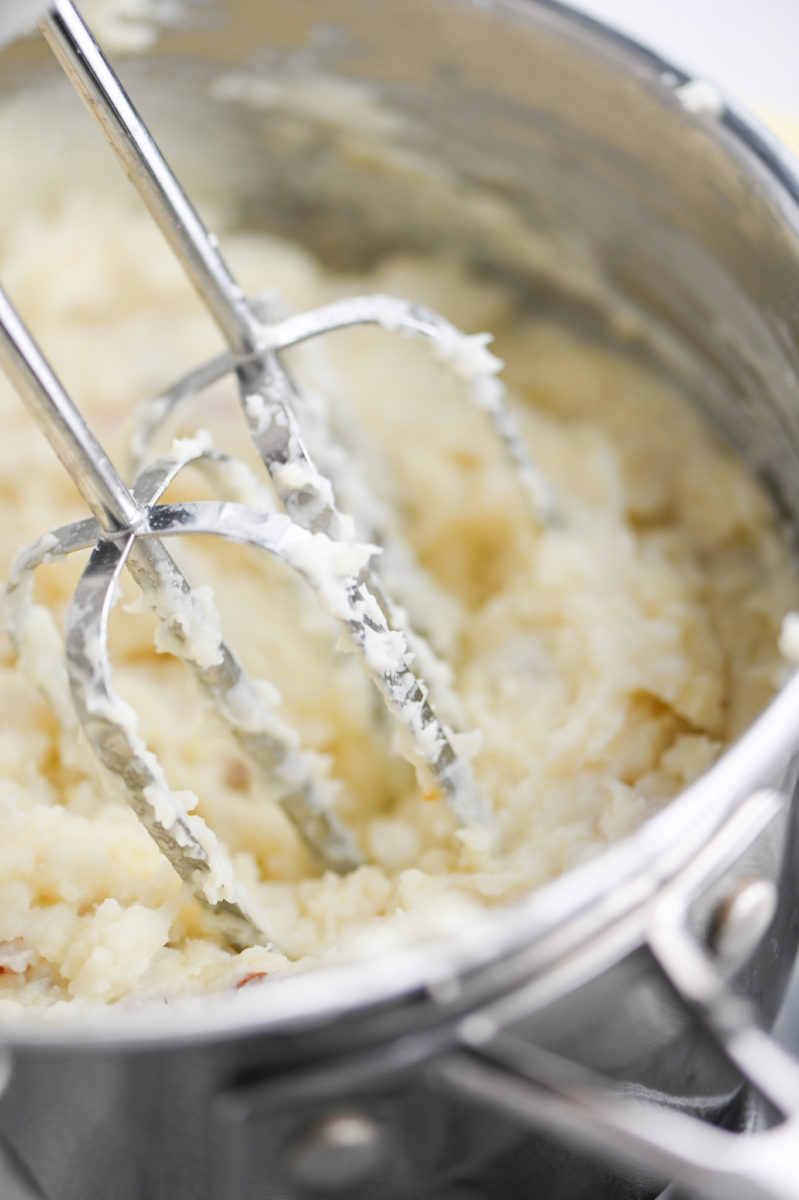 • STEP #3: Add remaining ingredients to pot and mash. Fold in bacon. Season to taste with salt and pepper. Serve hot.