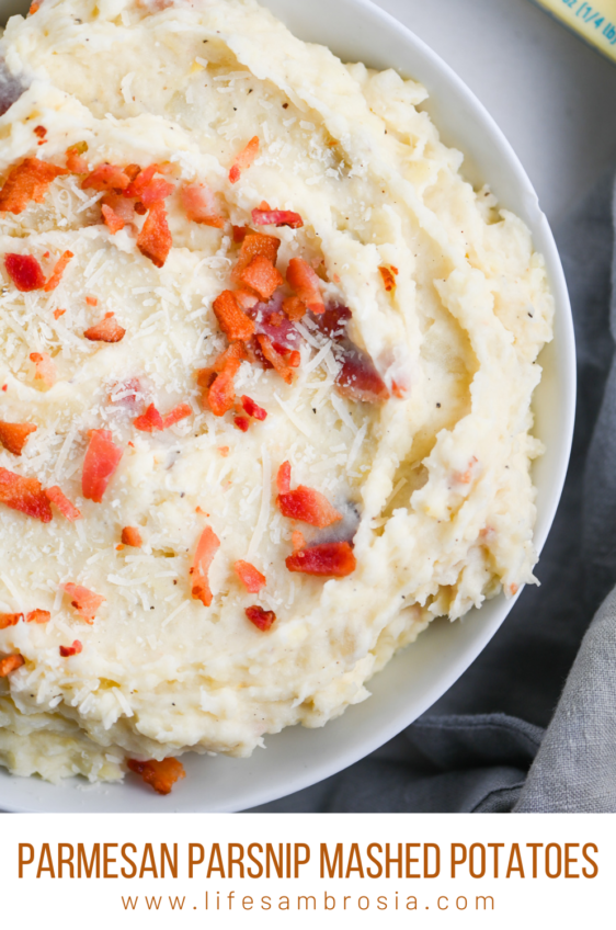 A twist on mashed potatoes with parsnips, parmesan and bacon. A great weeknight side dish.