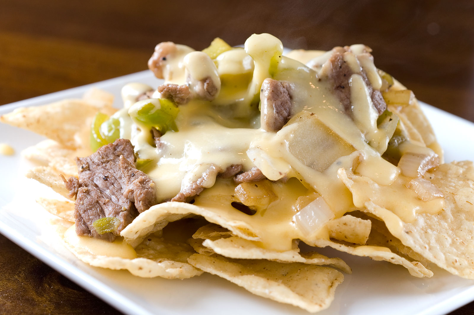 As I get further into the second trimester of my pregnancy, the nausea and the food aversions have been replaced by a hunger that just won’t quit. Of course I’m not craving veggies or fruit, no, no, I’m craving Oreos, french fries, pizza and a plethora of other things I probably shouldn’t be eating. And what should you not do when you are in my shoes? Watch Man vs. Food. You see, when you watch Man vs. Food when you are as hungry as I am, you want everything you see. Strike that you need everything you see. That is exactly what happened after I saw a recent episode where he tried Philly Cheesesteak Nachos. There was no question, I needed them. So I made them. Then I ate them with reckless abandon.