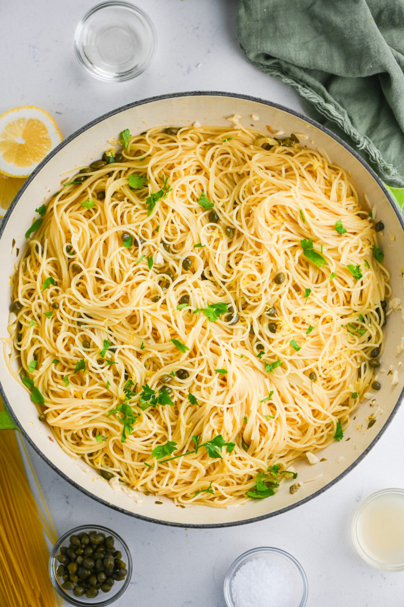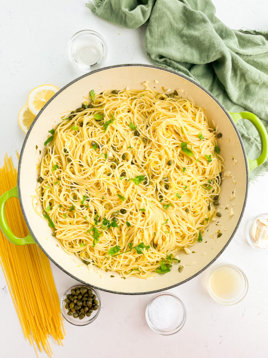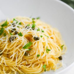 As I said above, making this Piccata Pasta could not be easier! Simply make the sauce while you’re waiting for the noodles to cook, toss and voila! Piccata Pasta.