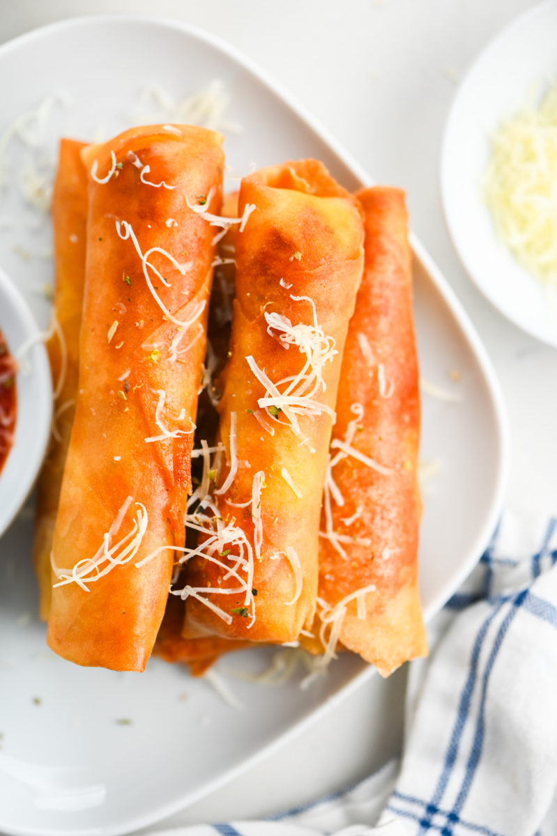 You can make these pizza egg rolls to the point of frying and keep them refrigerated until ready to cook. You can also make them in advance and freeze them. I recommend freezing them in a single layer on a baking sheet then placing them in freezer bags.