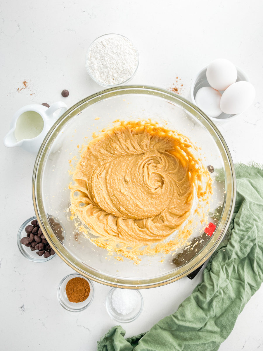 STEP #1: Cream together butter and brown sugar. Add in eggs and vanilla.