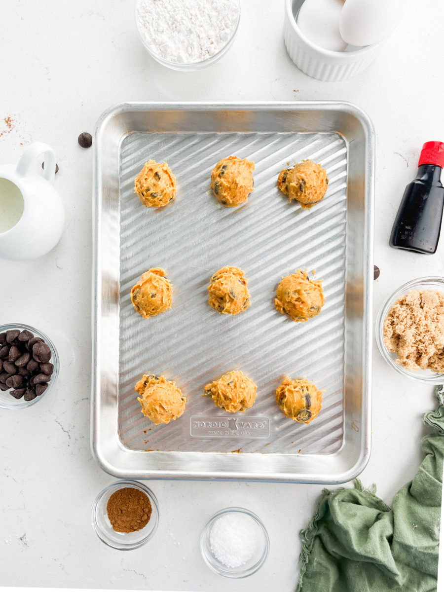 STEP #3: Scoop heaping tablespoons of batter onto a cookie sheet and bake. I used a cookie scoop for this. Allow to cool completely.