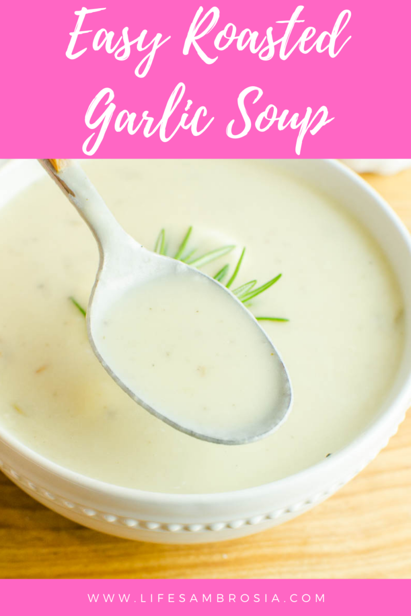 With this Garlic Soup Recipe, I have combined the two! The sweet taste of roasted garlic in a creamy, velvety soup. It really doesn’t get much better than this!