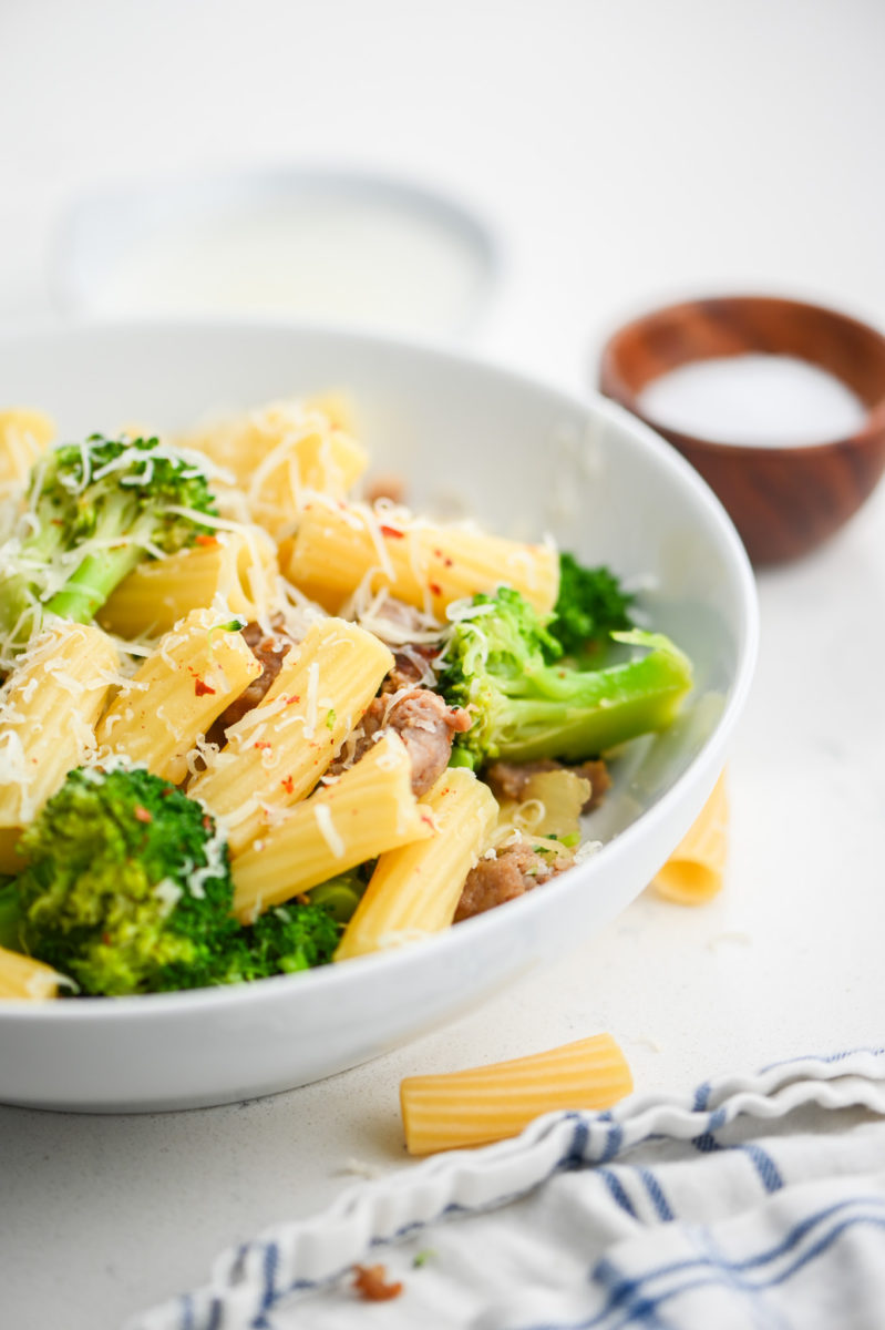 One of my favorite things about this Sausage Broccoli Pasta is that it can come together in about the time that it takes to make the pasta.