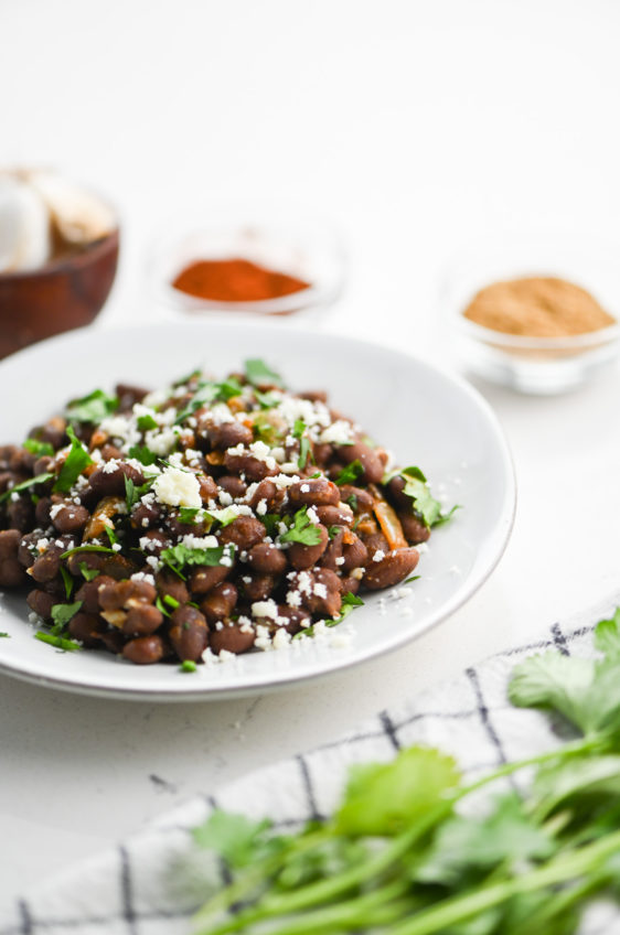 Looking for a quick and easy way to jazz up canned black beans? These Seasoned Black Beans are it! Seasoned with spices, onions, garlic, cilantro and cotija.