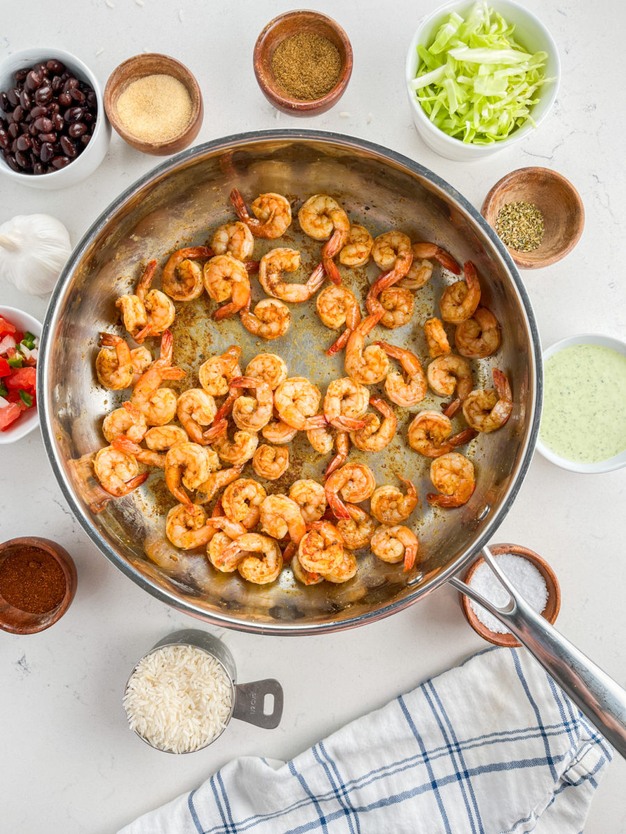 This recipe is essentially broken into three parts: Cooking the shrimp, cooking the beans and assembling the bowls. Follow along with these step by step photos and instructions.