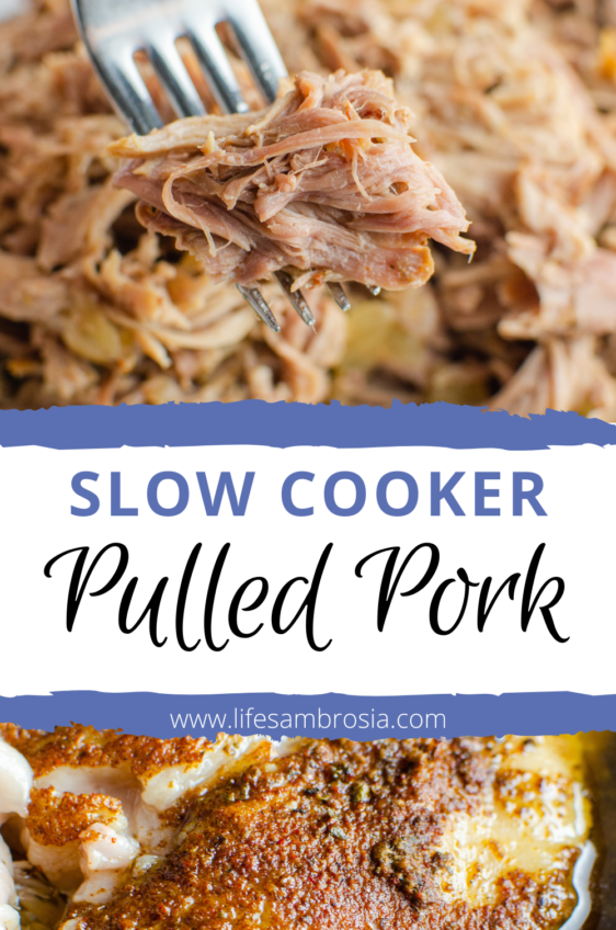 Succulent slow cooker pulled pork seasoned to perfection and simmered all day in the slow cooker. Perfect all by itself or for use in many different recipes.