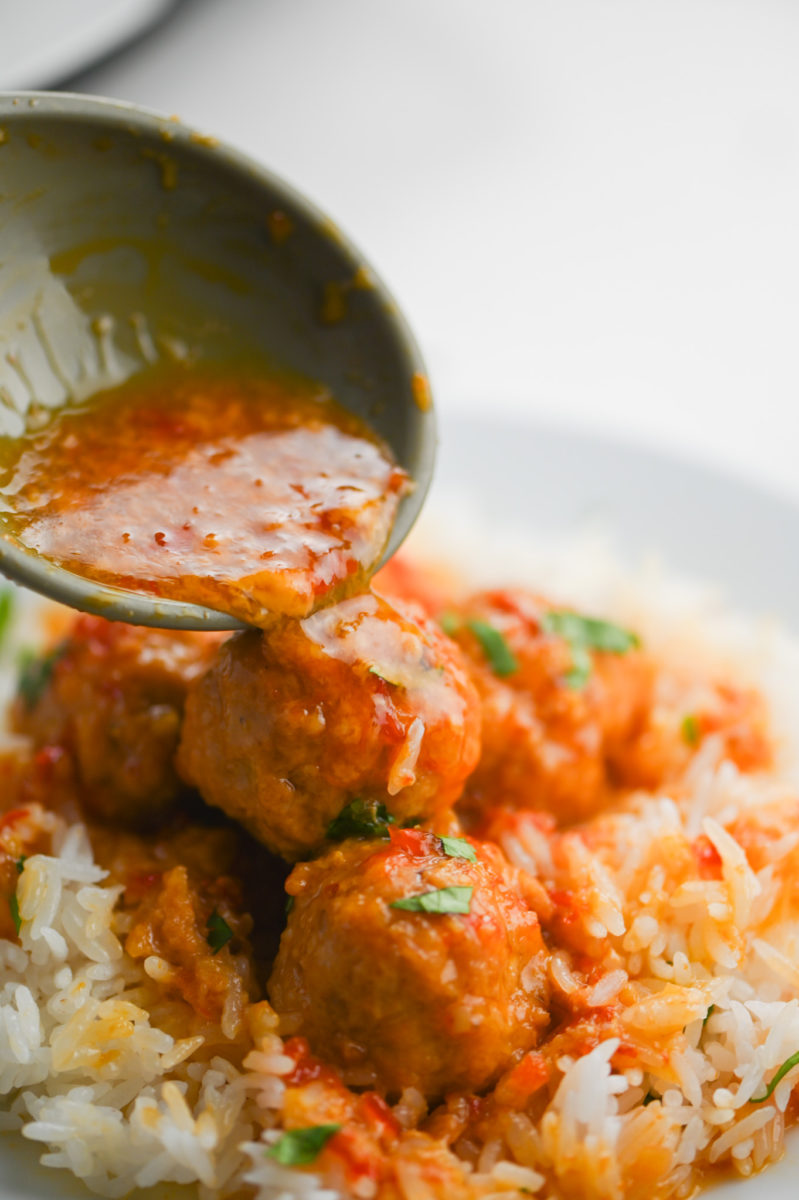 These Slow Cooker Sweet Chili Meatballs are great served with some steamed rice to soak up all of that delicious sauce.