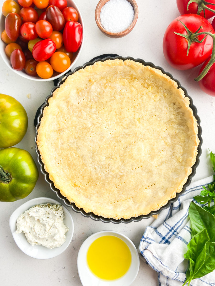 Even with making the tart crust from scratch, you’ll find that this tomato tart recipe is really easy to make! Follow along with these step by step photos and instructions to help you along the way.