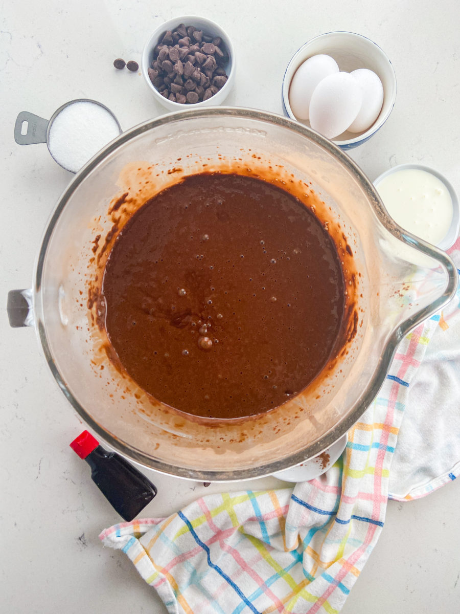 • STEP #1: In a bowl of a stand mixer fixed with the paddle attachment (or using an electric hand mixer) combine sugar, flour, cocoa powder, baking powder, espresso powder, baking soda and salt. Mix together.