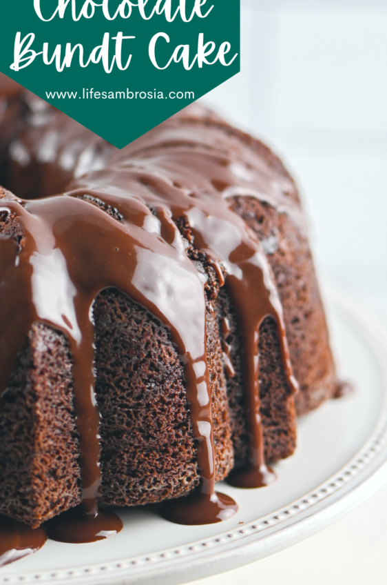 Oh my heavens, this Triple Chocolate Bundt Cake is a good cake. Like really, really good. It’s moist,  studded with chocolate chips and topped with chocolate ganache. Like I said…really, really good.
