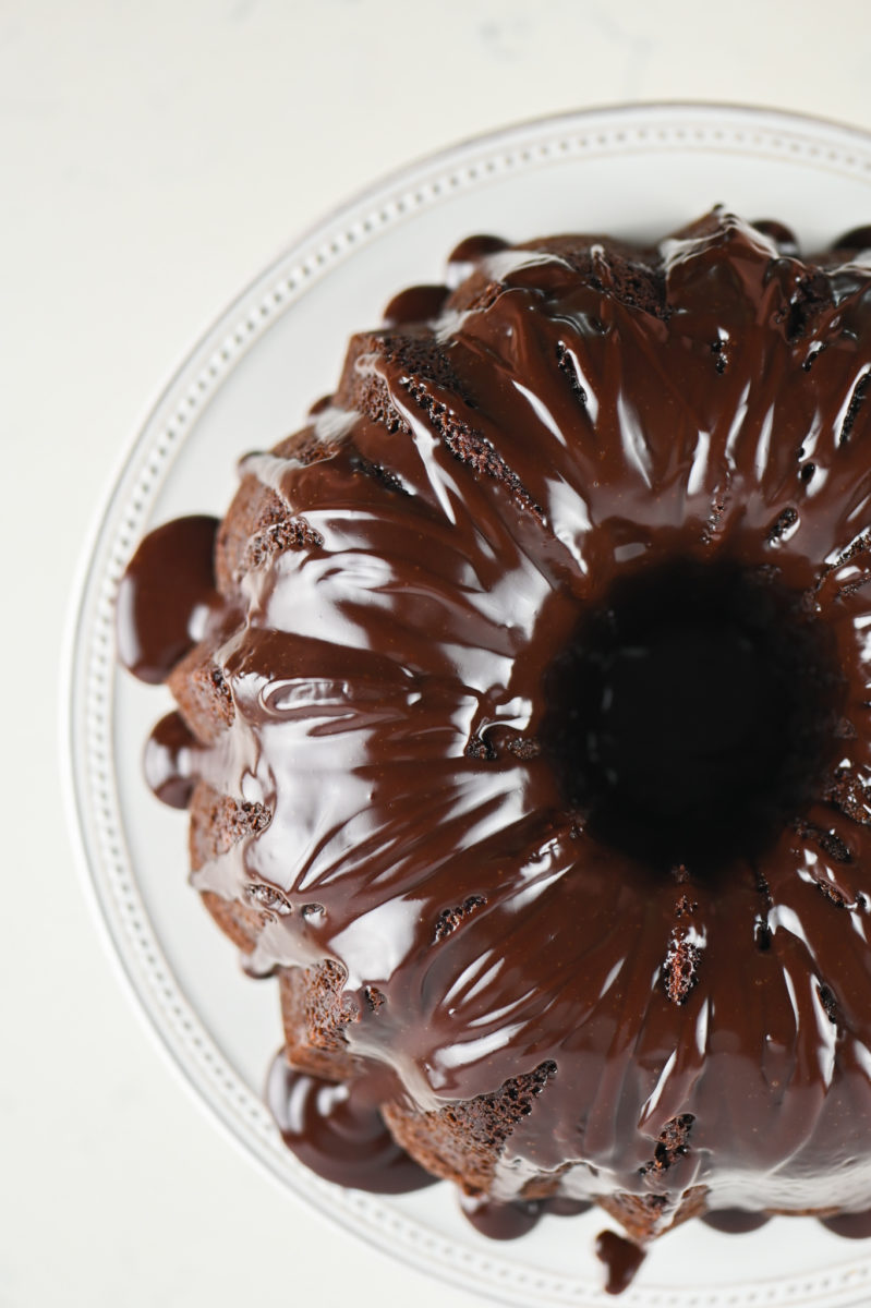 Be sure to see trouble shooting tips above if you have issues with bundt cakes sticking in the pan. You can do this with an electric hand mixer if you don't have a stand mixer. For safety ganache needs to be refrigerated. I recommend taking the cake out about 1 hour before serving so it can come to room temperature. Nutrition information for estimation purposes only.