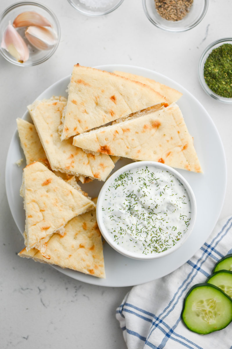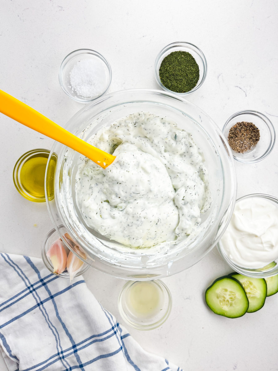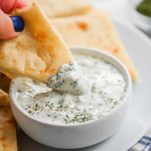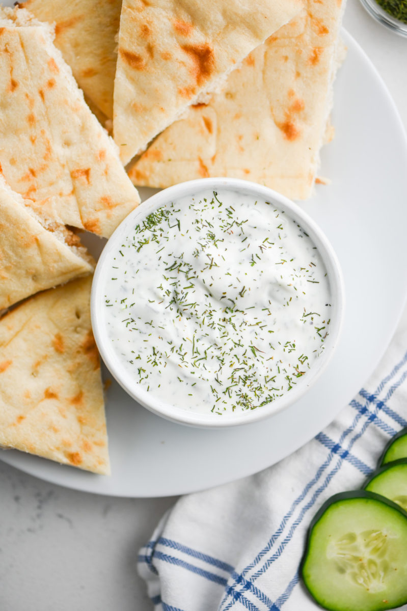 Tzatziki Sauce is a creamy, tangy Greek yogurt dip with dill, garlic, cucumber and lemon. It’s full of flavor and perfect for pita, gyros, grilled meats and veggies.