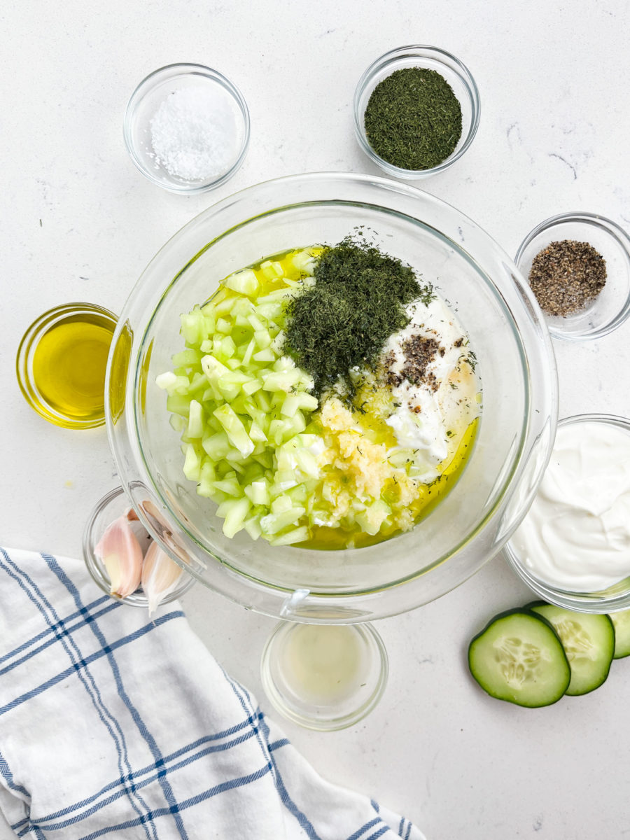 Tzatziki Sauce is a classic Mediterranean dip that you’ll often find served along side pita, veggies, fries, and gyros. It also serves as a great sauce to spoon over grilled meats like chicken or lamb.