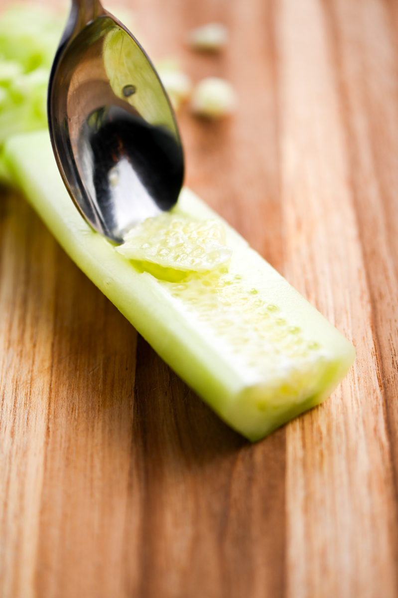 STEP #1: Use a spoon to remove all of the seeds from the cucumber and dice small.