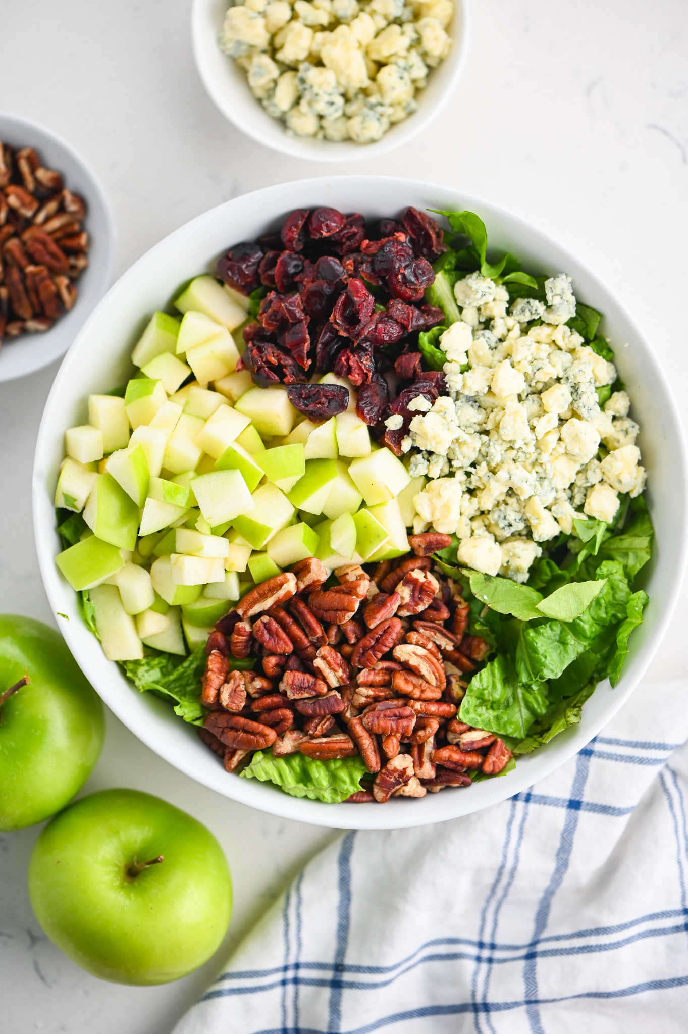 ROMAINE LETTUCE GRANNY SMITH APPLES DRIED CRANBERRIES PECANS GORGONZOLA
